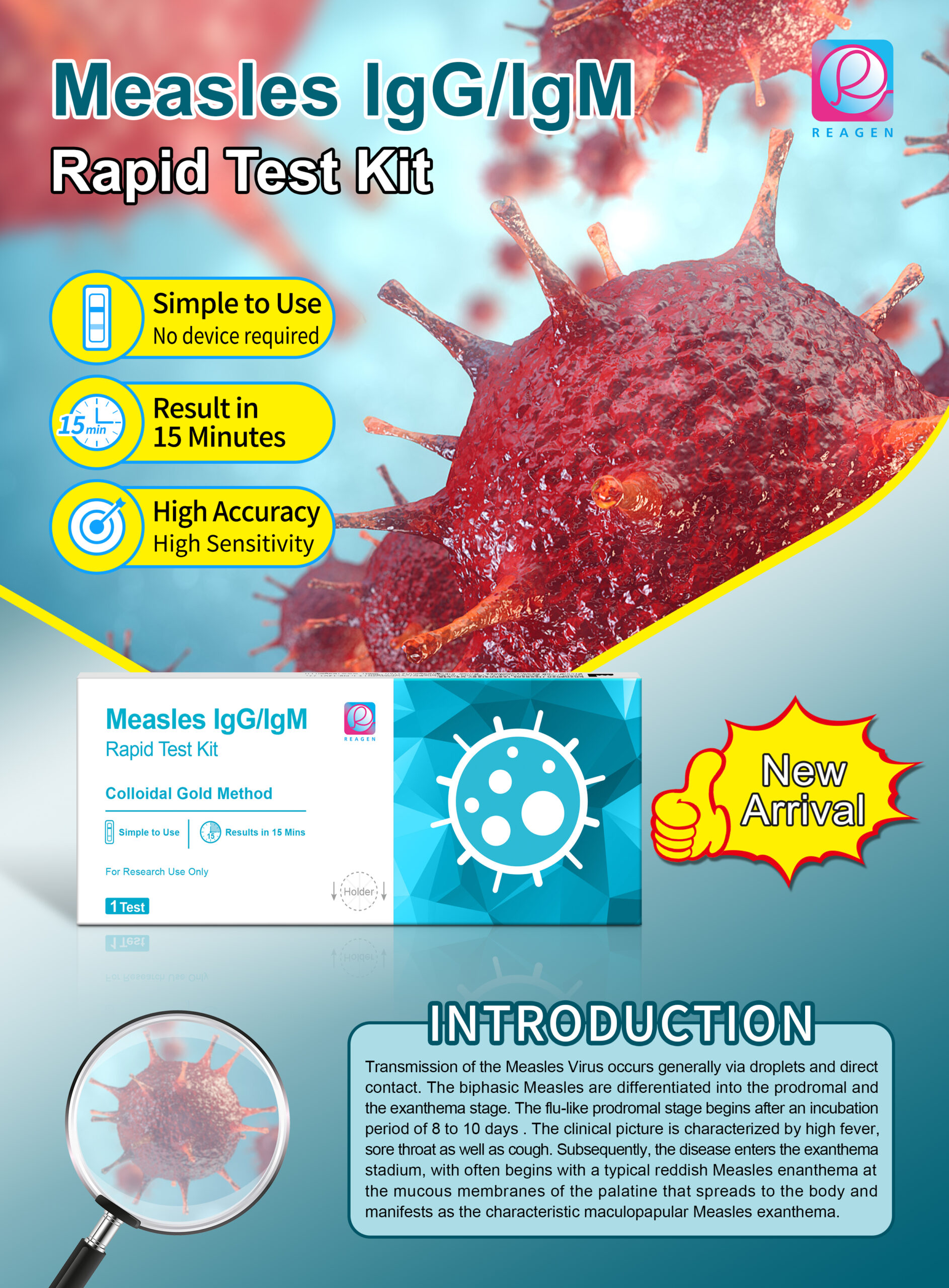 This essay will argue that the Measles lgG/lgM Rapid Test Kit is a valuable tool for diagnosing measles due to its ease of use,rapid results,and high sensitivity and specificity.The Measles lgG/lgM Rapid Test Kit is designed to detect both lgG and lgM antibodies specific to the measles virus in a patient’s blood sample.lgG antibodies are produced later in the course of the infection and persist long after the acute phase,while lgM antibodies are typically present during the acute phase of the infection.By detecting both lgG and lgM antibodies,the test can provide a comprehensive picture of a patient’s immune response to the measles virus,allowing for a more accurate diagnosis.One of the key advantages of the Measles lgG/lgM Rapid Test Kit is its ease of use.The test can be performed on-site,without the need for specialized equipment or trained laboratory personnel.This makes it particularly useful in settings where access to traditional laboratory testing is limited,such as in rural or remote areas,or during outbreaks where rapid diagnosis is crucial.The simplicity of the test also means that it can be easily incorporated into existing healthcare workflows,allowing for quick and efficient screening of patients suspected of having measles.