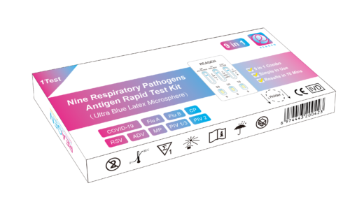 This kit is used for in vitro qualitative detection of COVID-19, Influenza A virus(Flu A), Influenza B virus(Flu B),Respiratory syncytial virus(RSV), Adenovirus(ADV), M.Pneumoniae(MP), Chlamydia pneumoniae(CP) , Parainfluenza virus 1/3(PIV1/3) and Parainfluenza virus 2(PIV 2) antigen in human nasal swab samples.