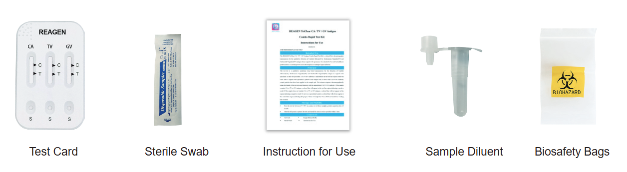 This Kit is a lateral flow chromatographic immunoassayfor the qualitative detection of Candida Albicans(CA)Trichomonas Vaginalis(TV) and GardnerellaVaginalis(GV) antigens from vaginal swabspecimens. It is intended to be used byhealthcare professionals as a screen-ing test to aid in the diagnosisof multiple vaginal infection.